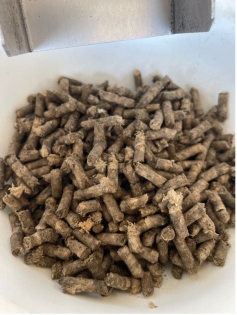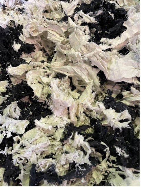 私たちが回収した衣類は、まず破砕機に入れて細かい状態にし、その後粉砕機に入れて粉末状にします。そして有機物と混ぜる工程を経て、最終的にペレット状にすることにより、月間 50 トン以上の肥料を作り、スピードを上げて土壌の活性化を促します。私たちは Fashion and Farm の本当のあり方を目指しています。