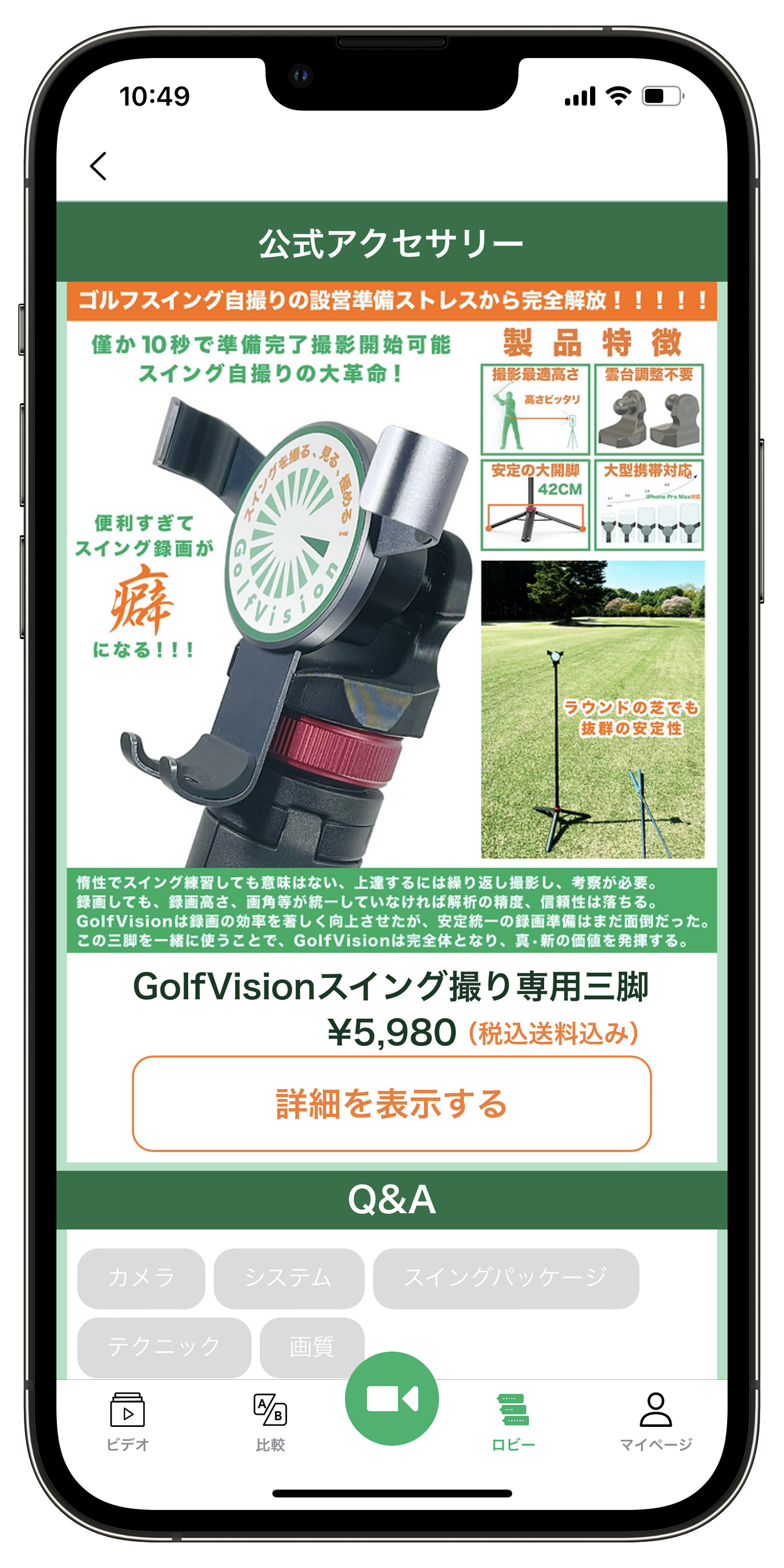 周辺機器(三脚)、メインアプリ(GolfVision)、スイングパッケージのエコシステムを構築することで、皆様のゴルフスイング練習をサポートしていきたいと、チーム一同心から強く願っています。