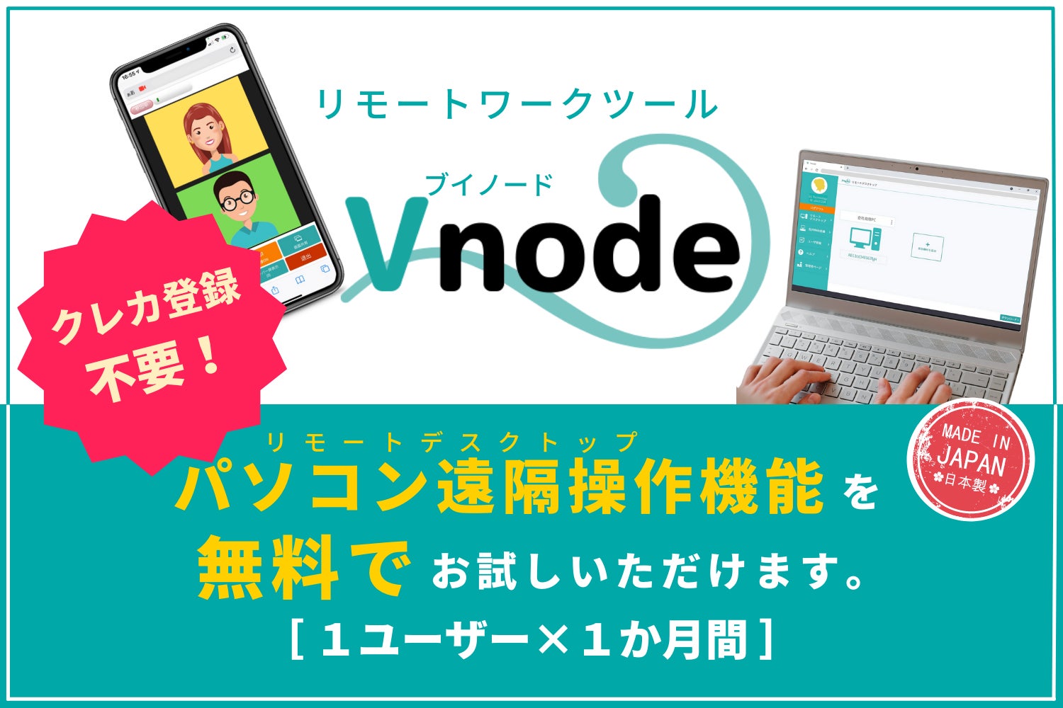 インターネットブラウザ上で稼働するリモートワークツール『Vnode』の人気機能「リモートデスクトップ(遠隔操作)」機能を、クレジットカード登録なしで、気軽にお試しいただけます。