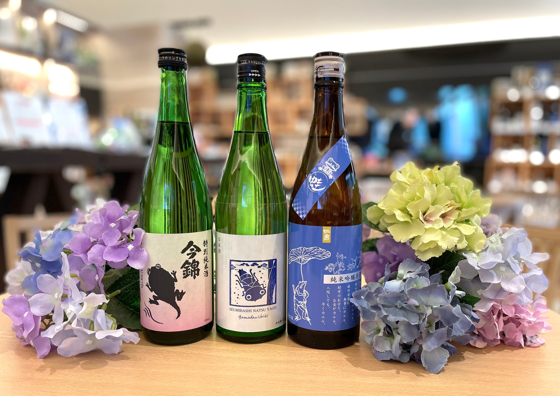 今年は長梅雨が予想されているなか、少しブルーな梅雨の季節を日本酒で楽しんでもらいたいとの思いから、今回は「梅雨入り酒」をテーマに情報館が飲み比べセットを選びました。