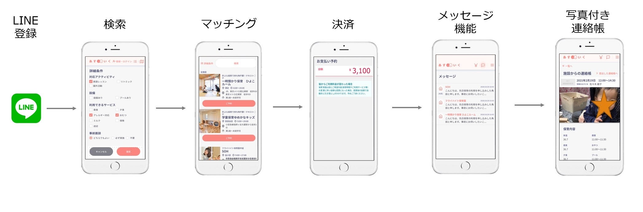 あすいくは、スマホ&LINEで使える一時保育の検索・予約サービスで、現在、保護者会員が約250人、26の保育施設が登録しています。