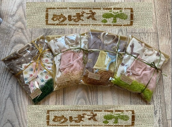 「めばえプロジェクトの」産着や洋服は、2200g 身長が40cmくらいからの赤ちゃんにきていただけるサイズです。
