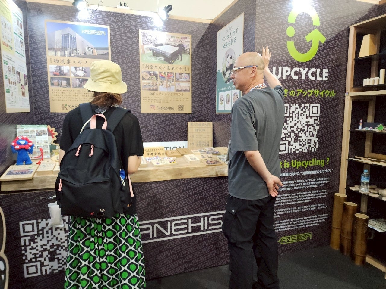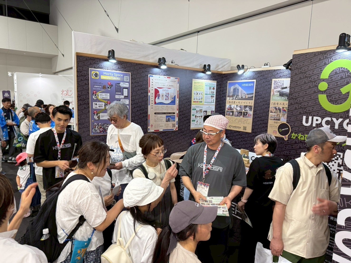 当社の“アップサイクル”をテーマにしたブースには、大勢の方々が足を止めてくださり、対話を通じて“持続可能なモノづくり”への関心の高まりを実感することができました。