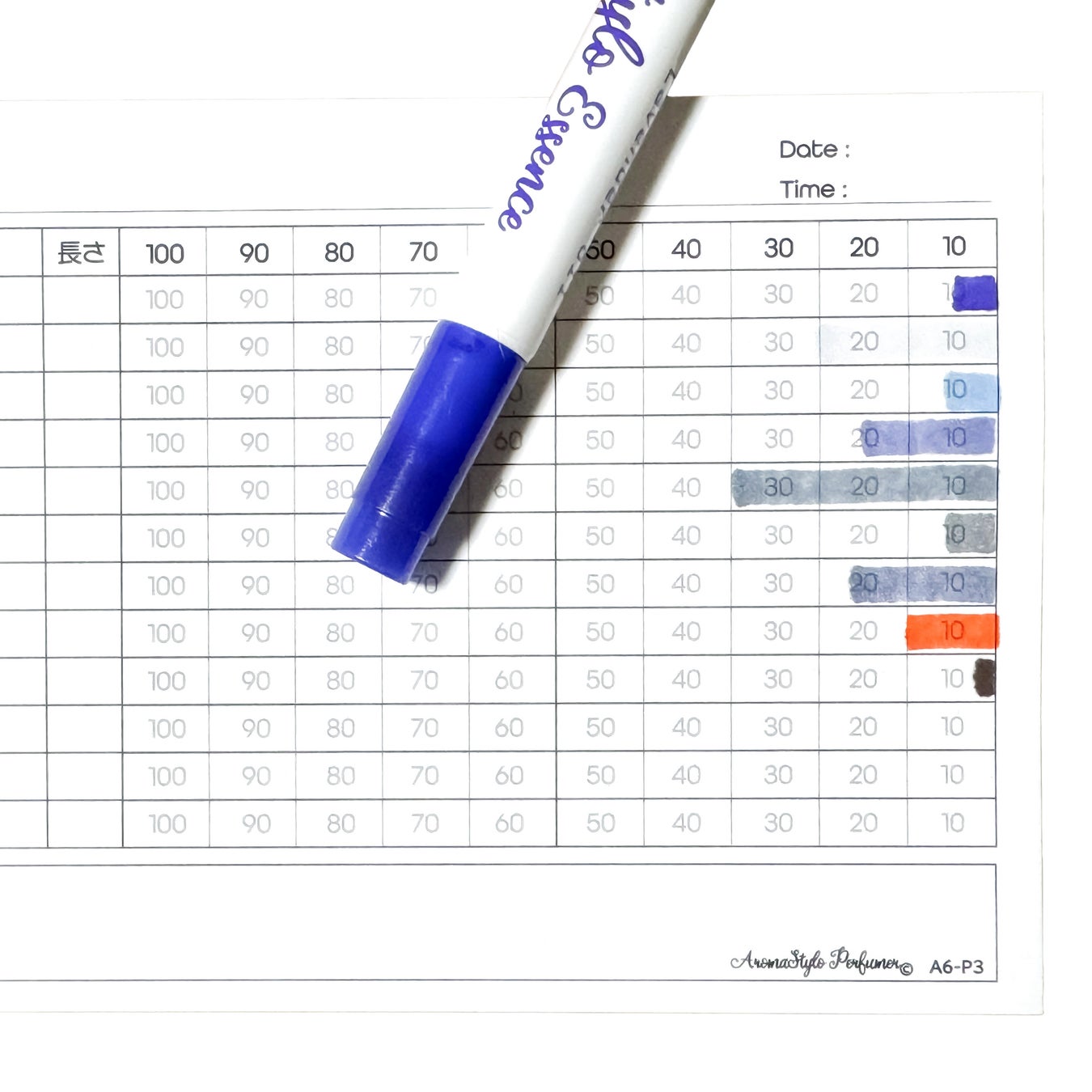 色を塗った線の長さで香りの量を計量