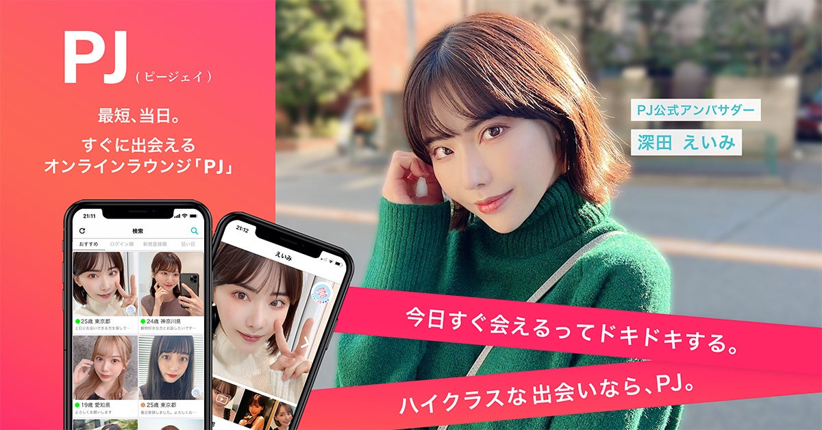 株式会社エクリプス(本社:東京都世田谷区、代表取締役社長: 小野川 充、以下「当社」)は、この度マッチングアプリ「PJ」の公式アンバサダーに深田えいみ氏を起用いたしました。それに伴い、Twitterでのプレゼントキャンペーンなどを行います。