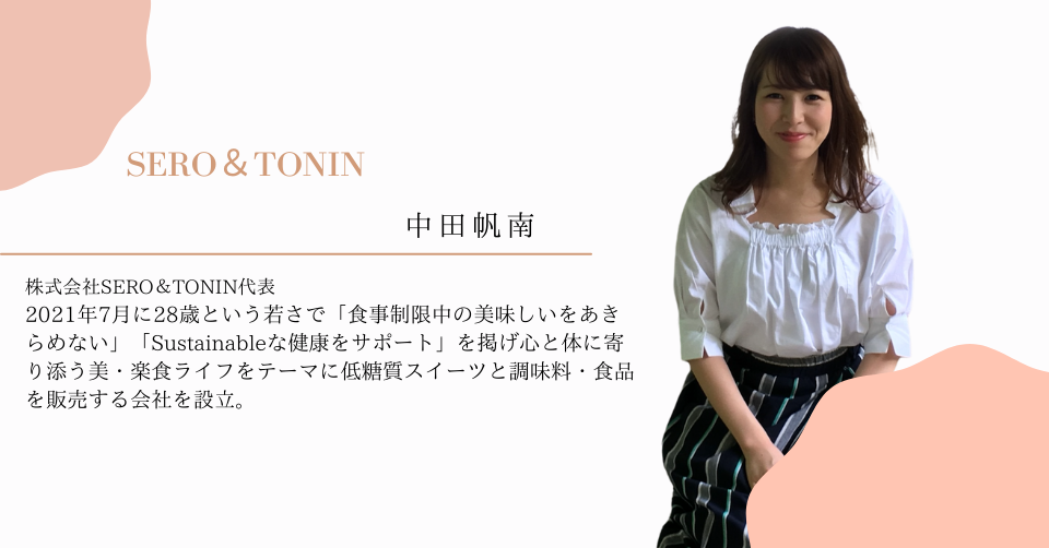 そんな夢のスイーツがあればきっと沢山の人を笑顔に出来るのではと考え、昨年7月に28歳という若さで「食事制限中の美味しいをあきらめない」「Sustainableな健康をサポート」を掲げ心と体に寄り添う美・楽食ライフをテーマに低糖質スイーツと調味料・食品を販売する会社を設立。