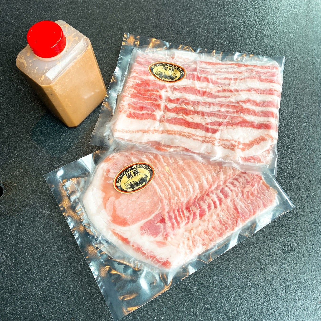 7月 焼肉食べ比べ/ 黒豚ロース250g、 黒豚カルビ250g 秘伝のタレ付き!