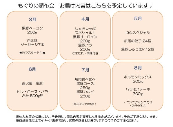 *「もぐりの頒布会」お届け内容はこちらを予定しております