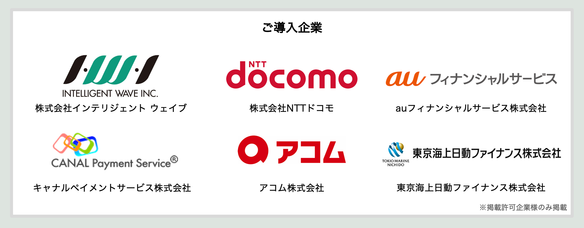 その他、メガバンク、システムインテグレーター、大手ITサービス、決済代行事業者などの企業様にご導入をいただいております。