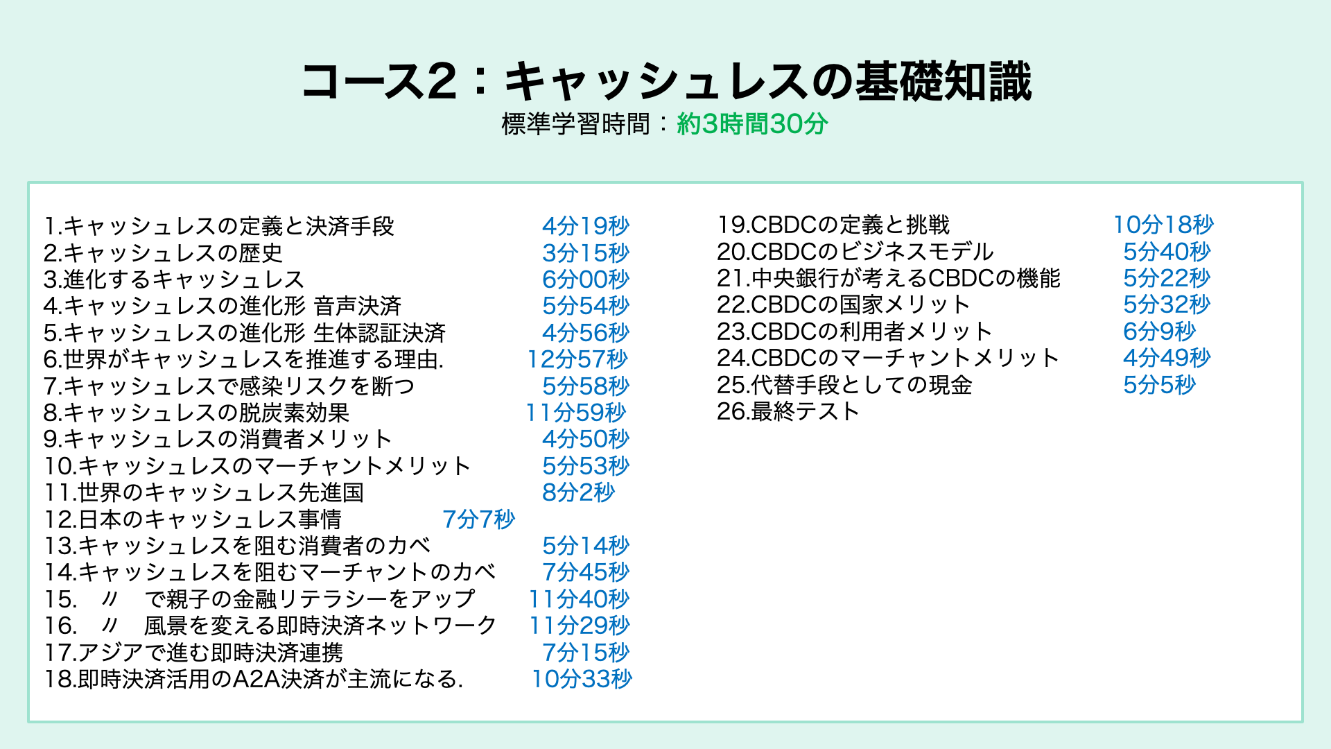 本ラーニングは、金融・決済の職務に関連した専門的な知識および、技能の習得をさせるための訓練(職務関連訓練)です。