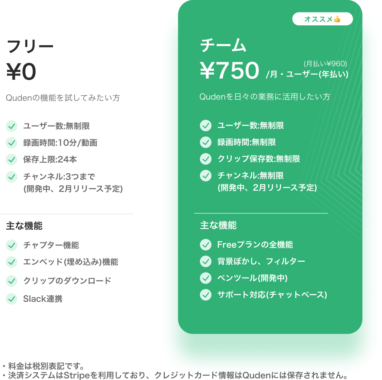 Qudenは2021年9月にベータ版として提供を開始、この度2022年2月よりフリープランに加え機能を拡張したチームプラン(有料)を加え正式リリースいたしました。Qudenのフリープランはカード情報不要、無料ですぐにご利用いただけます。また、Qudenの具体的なユースケースについて、実際にユーザーが作成した動画でご紹介しておりますのでこちらもぜひご覧ください。