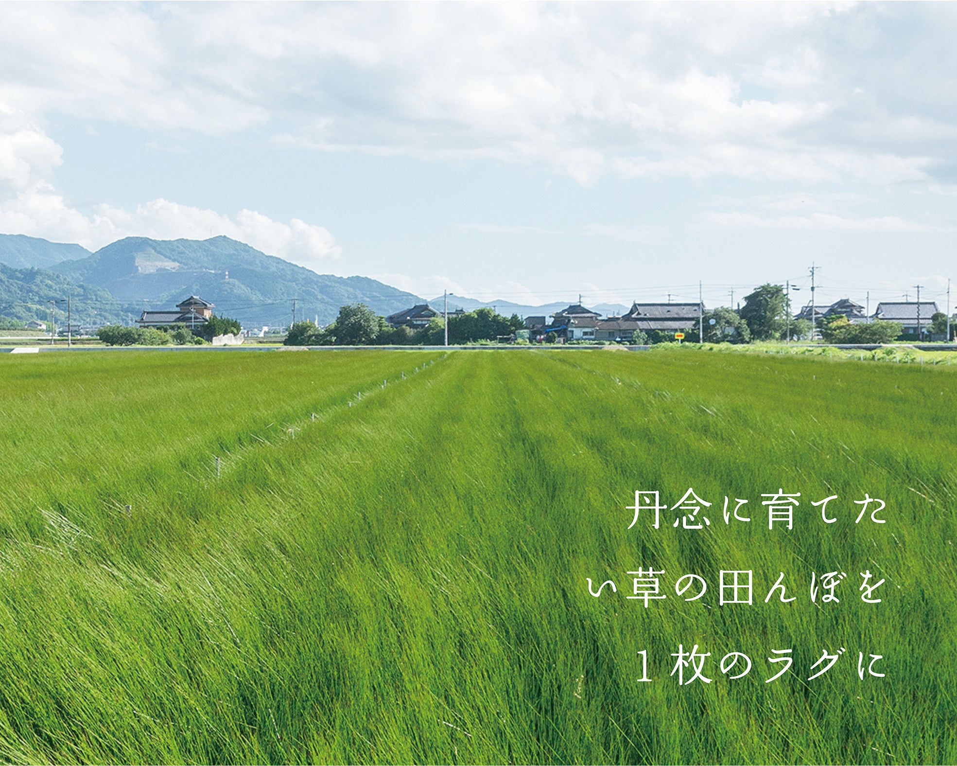 倉敷はい草と綿花に好かれた町。瀬戸内海沿岸では、塩分を含んだ土地に適した「綿」や「い草」が、岡山の産業を支えました。先人が残してくれた資産を1枚のラグに込めました。
