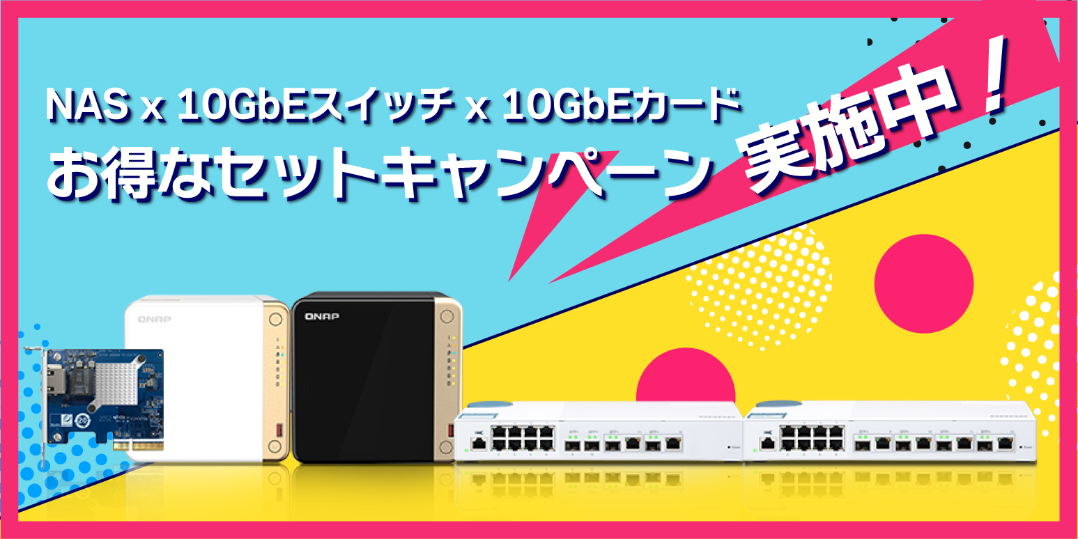 2022年最新NASモデルが人気の10GbEスイッチ等とセットでお得に購入可能。最大10,200円引き。
