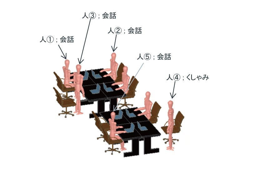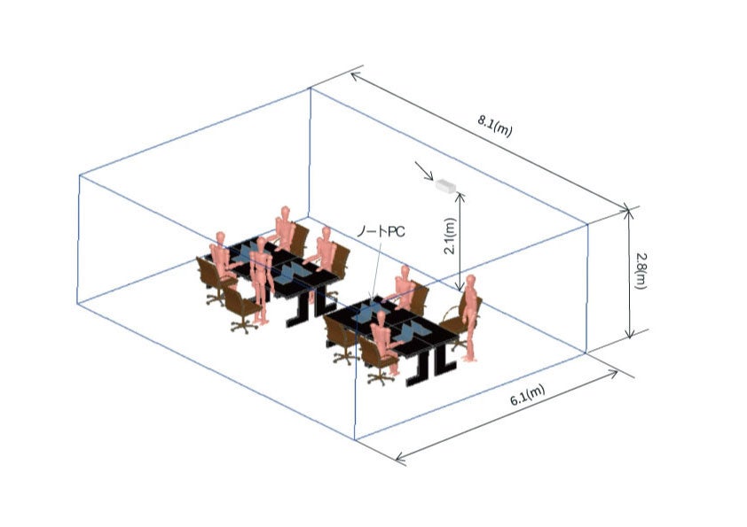 ▼シミュレーション条件(居室人数7名/会話4名、くしゃみ1名)