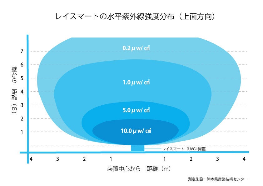 ▼レイスマートの照射領域イメージ(床面より2.1mの高さに設置)