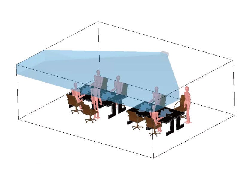 室内空間でのエアロゾルの動きを可視化することで、紫外線照射装置 レイスマートの有効性を検証。