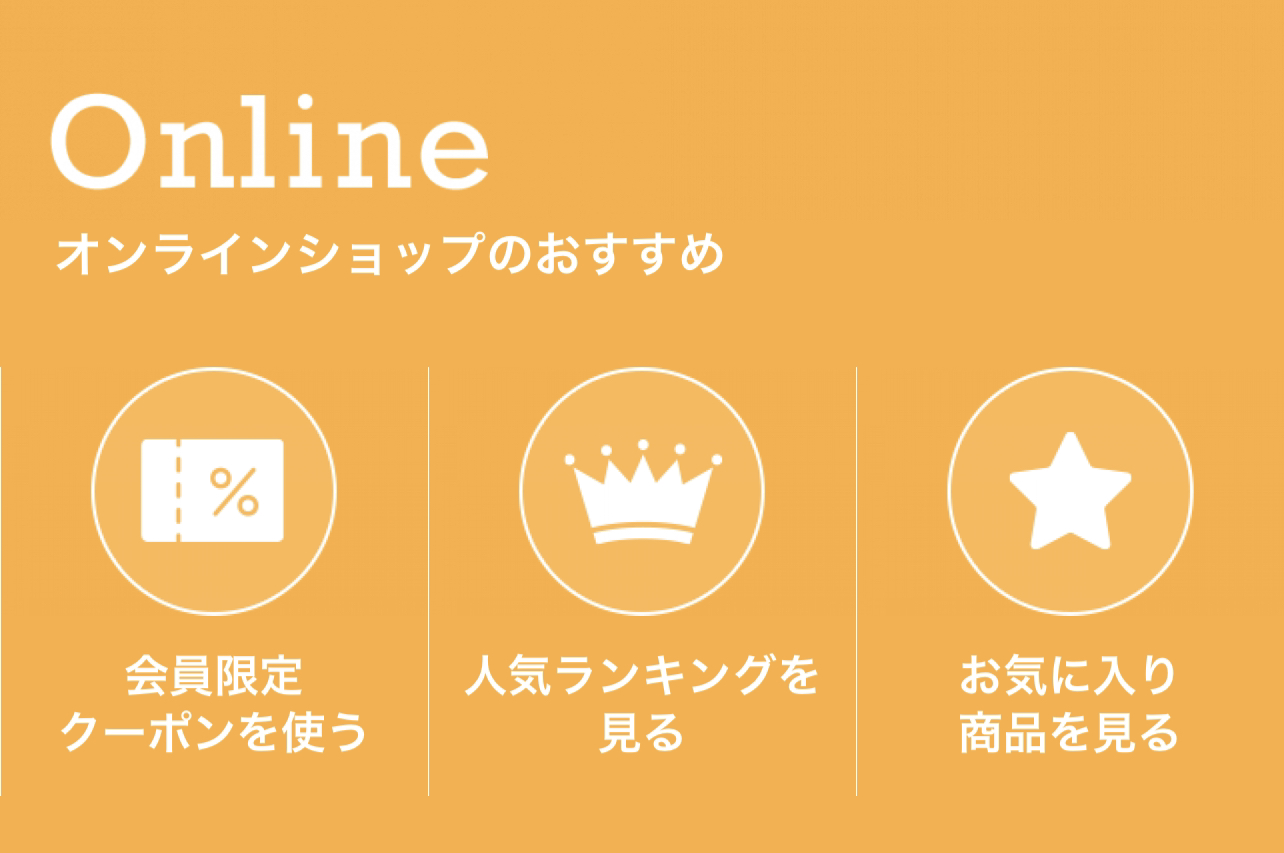 本アプリ内にオンラインショップの商品をお気に入り登録できます。オンラインショップでの買い物だけでなく、店舗での買い物リストとして利用することもできます。