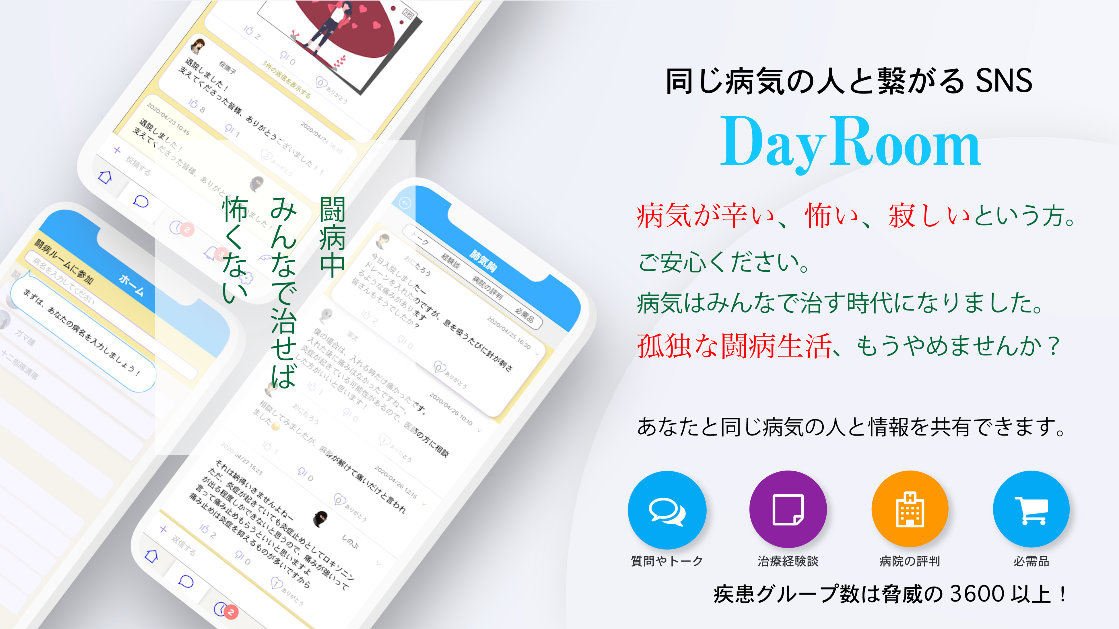 DayRoomとは、同じ病気の人と繋がる闘病SNSです。