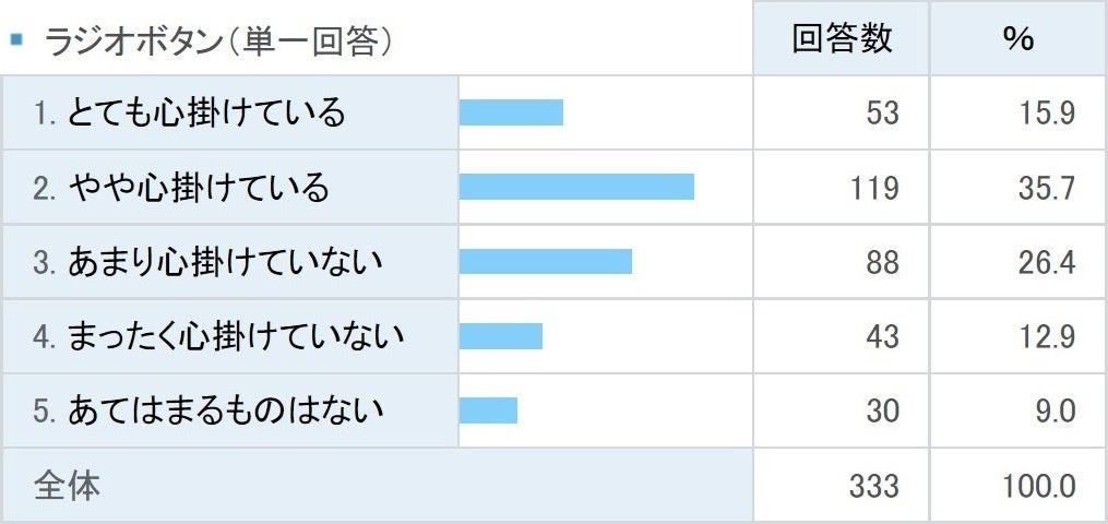 - 3割以上の方々が「意識して運動ができていない」という回答でした。