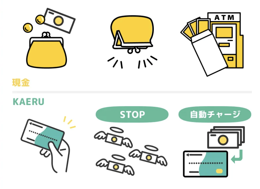 KAERUカードは事前チャージ式のプリペイドカードです。世界中のMasterard加盟店でクレジットカードと同じようにお支払いに使用できるので、細かいおつりの計算に悩まされることもありません。