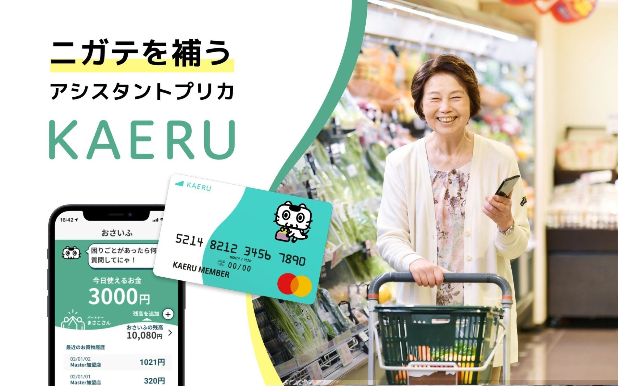 超高齢社会のお買いものをなめらかにするためのエイジテック/フィンテックサービスを提供するKAERU株式会社(本社:東京都中央区、代表取締役:岡田 知拓、以下 KAERU)は、もの忘れが増えてきた方をはじめ、認知症と診断された方や認知機能の低下に不安がある方も安心、簡単に使えるお買いものアシスタントアプリ「KAERU(かえる)」に、国際ペイメントネットワークブランドMastercard®※がついたプリペイドカードのアシスタントプリカ機能を実装し本格始動することをお知らせいたします。なお、12月21日(火)より当サービスの事前申し込みを開始いたします。