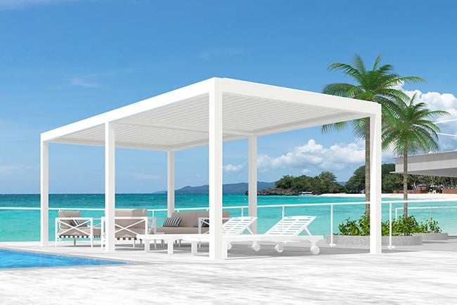- 全天候型で一年を通して快適に過ごせるアルミ製パーゴラ