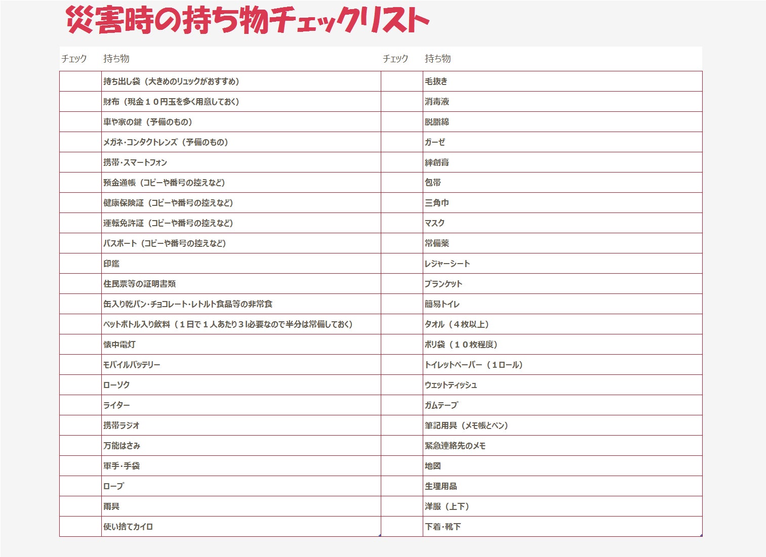 このチェックリストを見て、防災準備をしていない方は準備を。準備をしてあるという方はもう一度見直しをして少しでも安心感を得てみませんか?