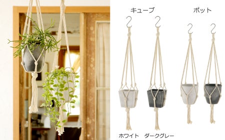 ③やさしい風合いのコットン製吊具、S字フック付き(ハンギング)