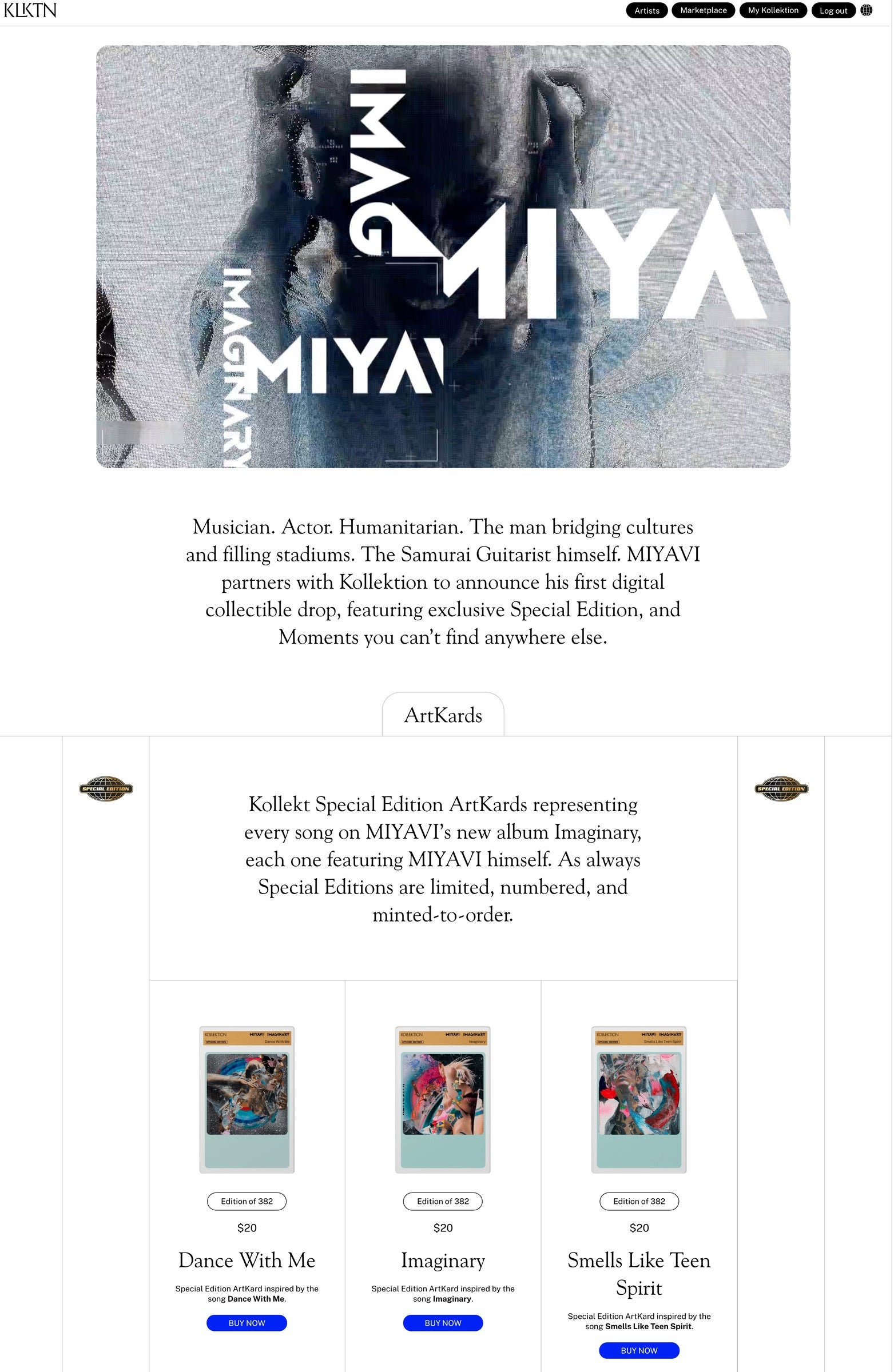 NFTプラットフォーム「Kollektion」にて、MIYAVIのデビュー20周年を記念したNFTを発売する「Month of MIYAVI」の開催を決定