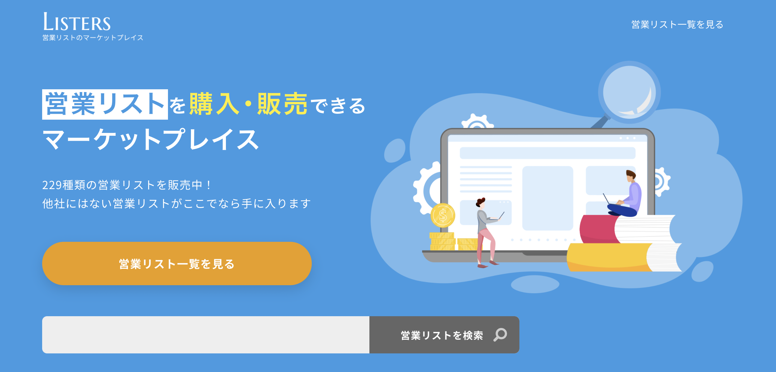 Listers(リスターズ)は、法人営業を行っている企業を対象とした、営業リストを購入・販売できるマーケットプレイスです。