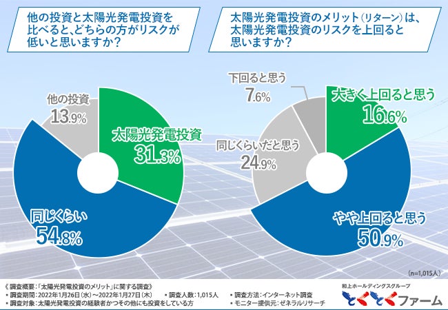 株式会社和上ホールディングス(本社所在地:大阪府大阪市、代表取締役:石橋 大右)は、太陽光発電投資の経験者かつその他にも投資をしている方を対象に、「太陽光発電投資のメリット」に関する調査を実施しました。