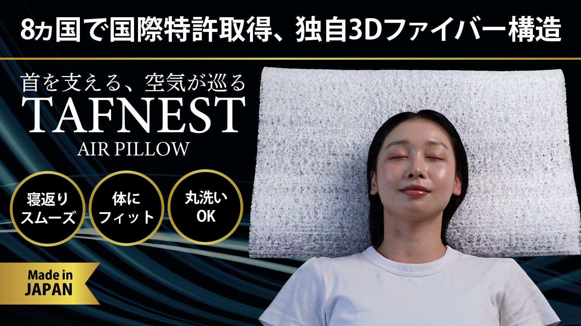 【世界8カ国で特許を取得した日本製3Dファイバー×フィットカーブ設計】ムレない・洗える・首がラクな新感覚まくら『TAFNEST AIR PILLOW(タフネストエアピロー)』Makuakeにて販売中!