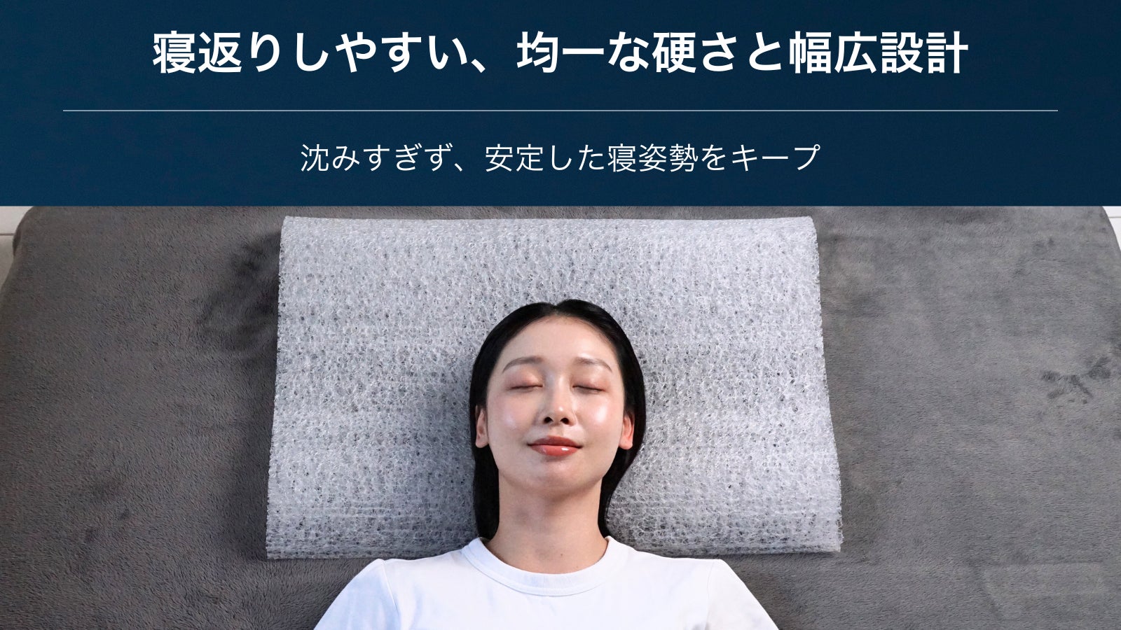 独自の立体カーブと通気構造により、頭部の圧力を分散し、首を自然な形に保ちます。さらに、「風が抜けるような」高通気設計により、熱と湿気を逃がし、ムレを感じず快眠が持続。フィット感・反発性・清潔さのすべてを兼ね備えた構造です。