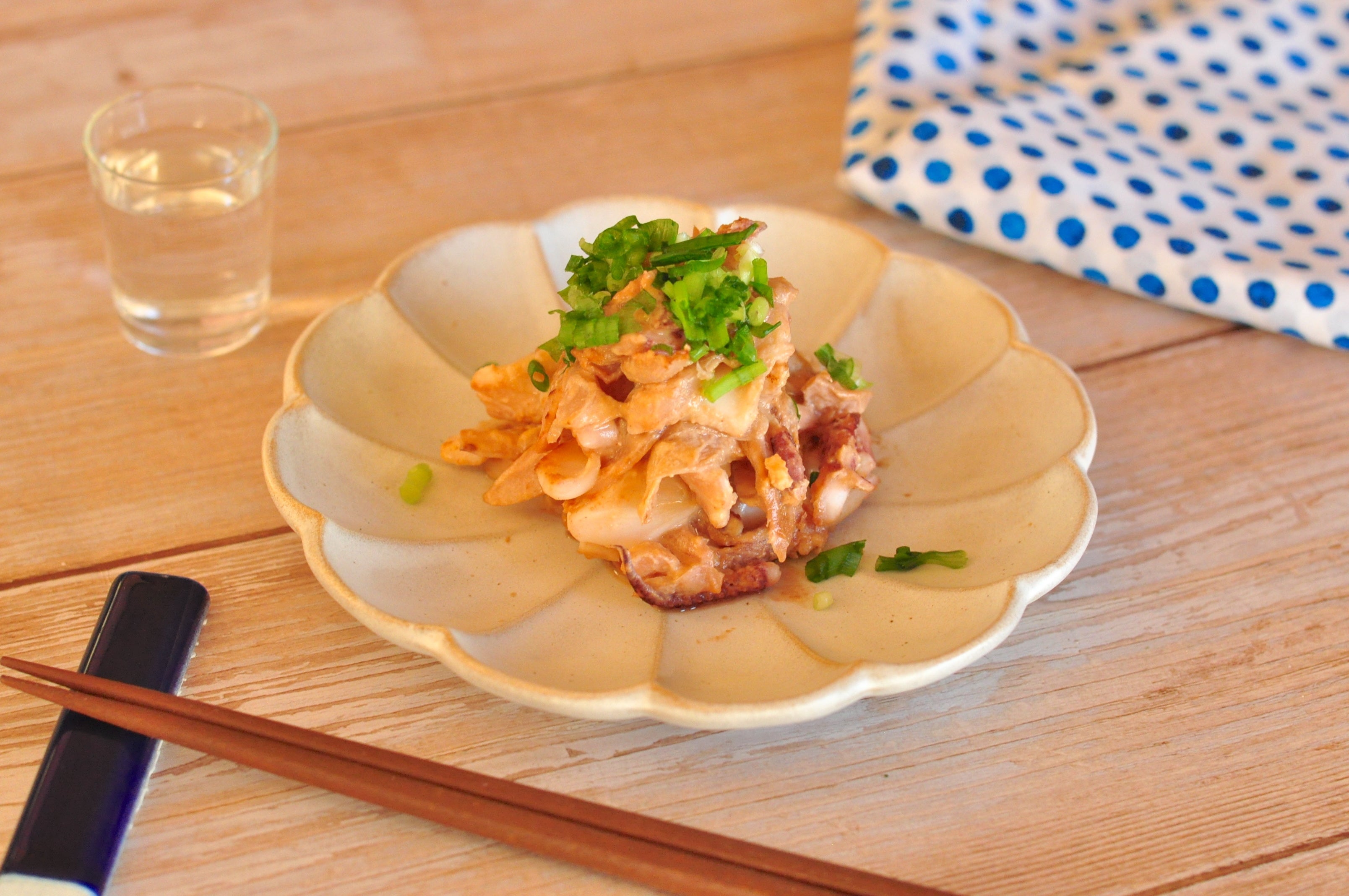 寒くなるこれからの季節にぴったり!冷えを改善する食材、酒粕を使った「イカと岩下の新生姜の酒粕炒め」のレシピです。2.の工程でイカの表面に切り込みを入れること味がより馴染みやすくなります。