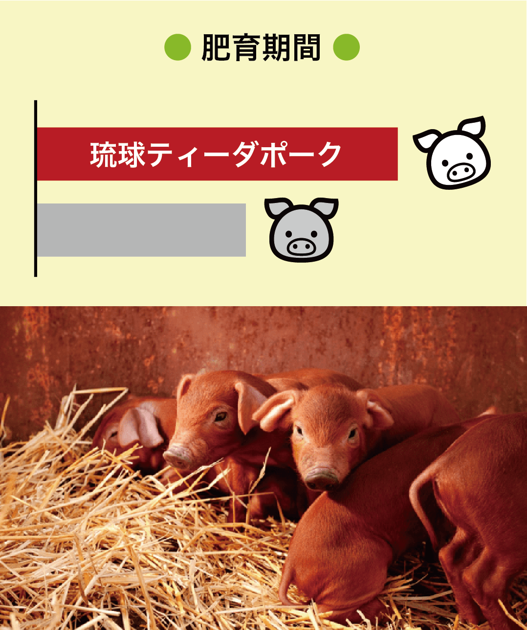 【琉球太陽豚(ティーダポーク)】は、この純粋デュロック種を沖縄の大自然の中で、飼育方法とエサにこだわって育てた超プレミアムなポークです。