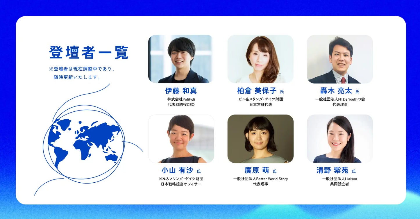国際協力・グローバルヘルス分野を中心に、多様なセクターからアドボカシーに取り組む方の登壇を予定しています。