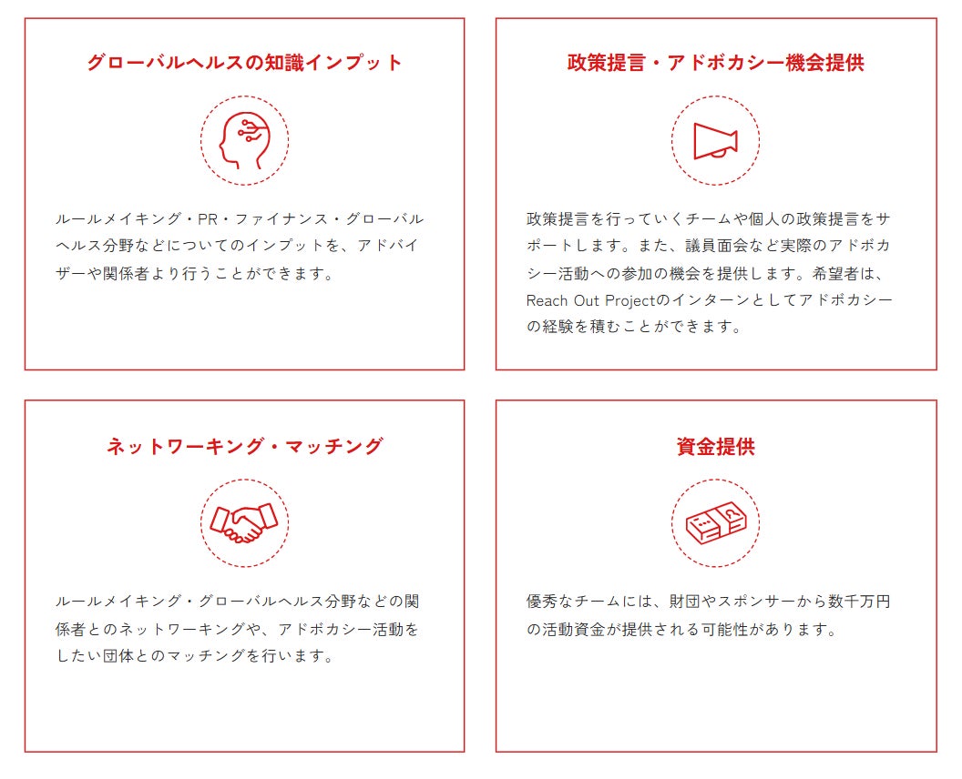 ◆グローバルヘルスをテーマに政策提言・ルールメイキング活動をサポートするプログラム「Reach Out Project」