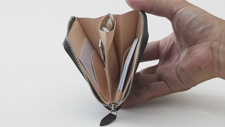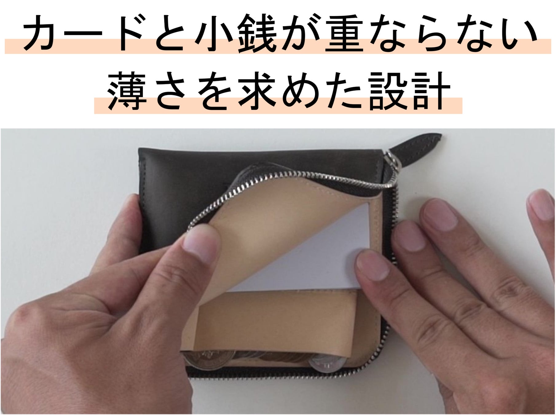必要なものがしっかり入る容量を確保しながら無駄を省いた設計で薄さも意識しながら試行錯誤して今回の財布の形に仕上げました。