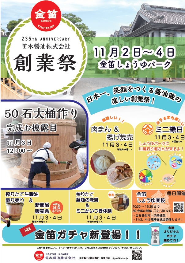 場 所:笛木醤油株式会社 本社・金笛しょうゆパーク(埼玉県川島町上伊草654)