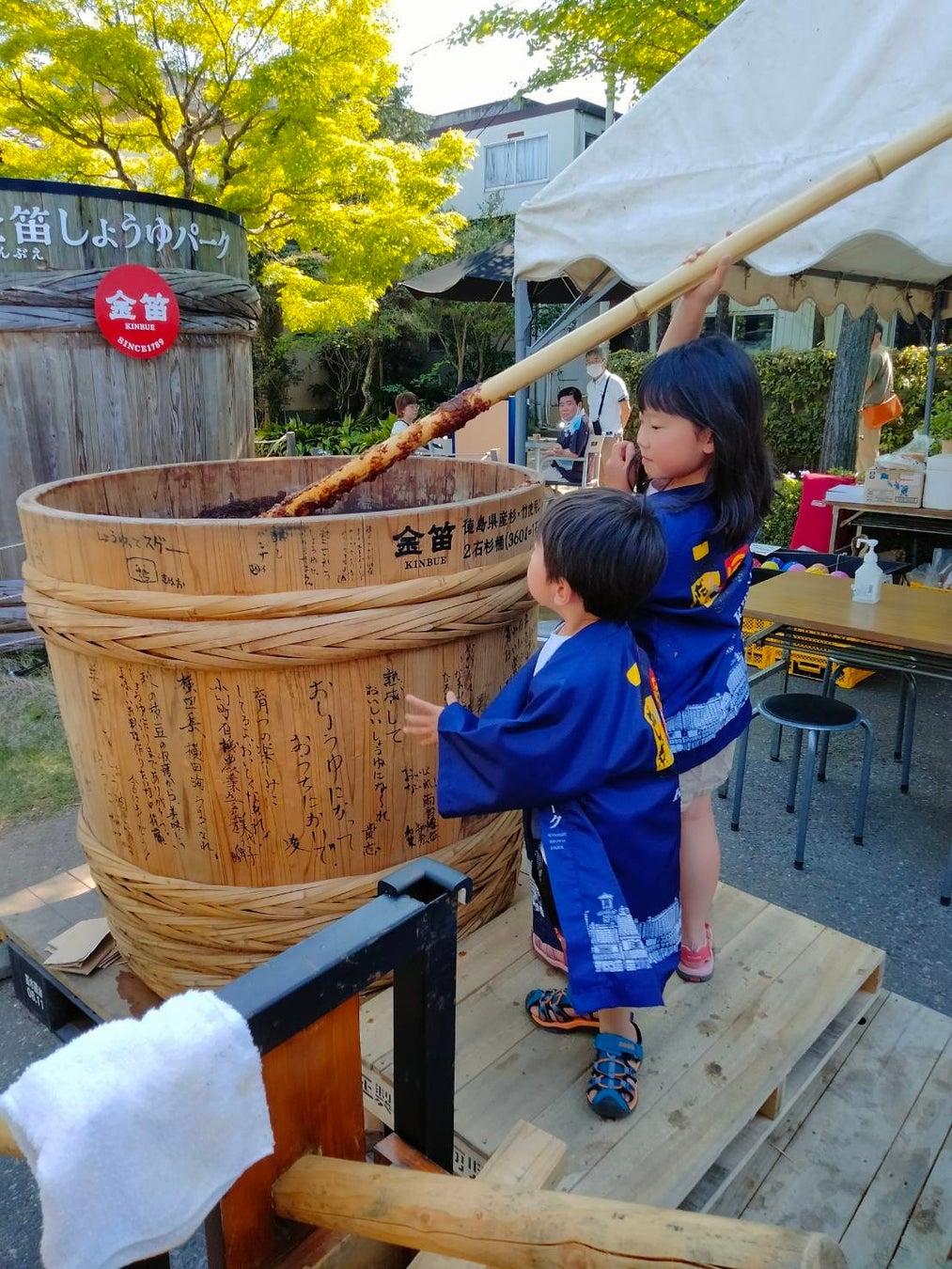 もろみをかき混ぜる櫂つき体験や、搾りたて生しょうゆの味見や限定グルメの販売も!
