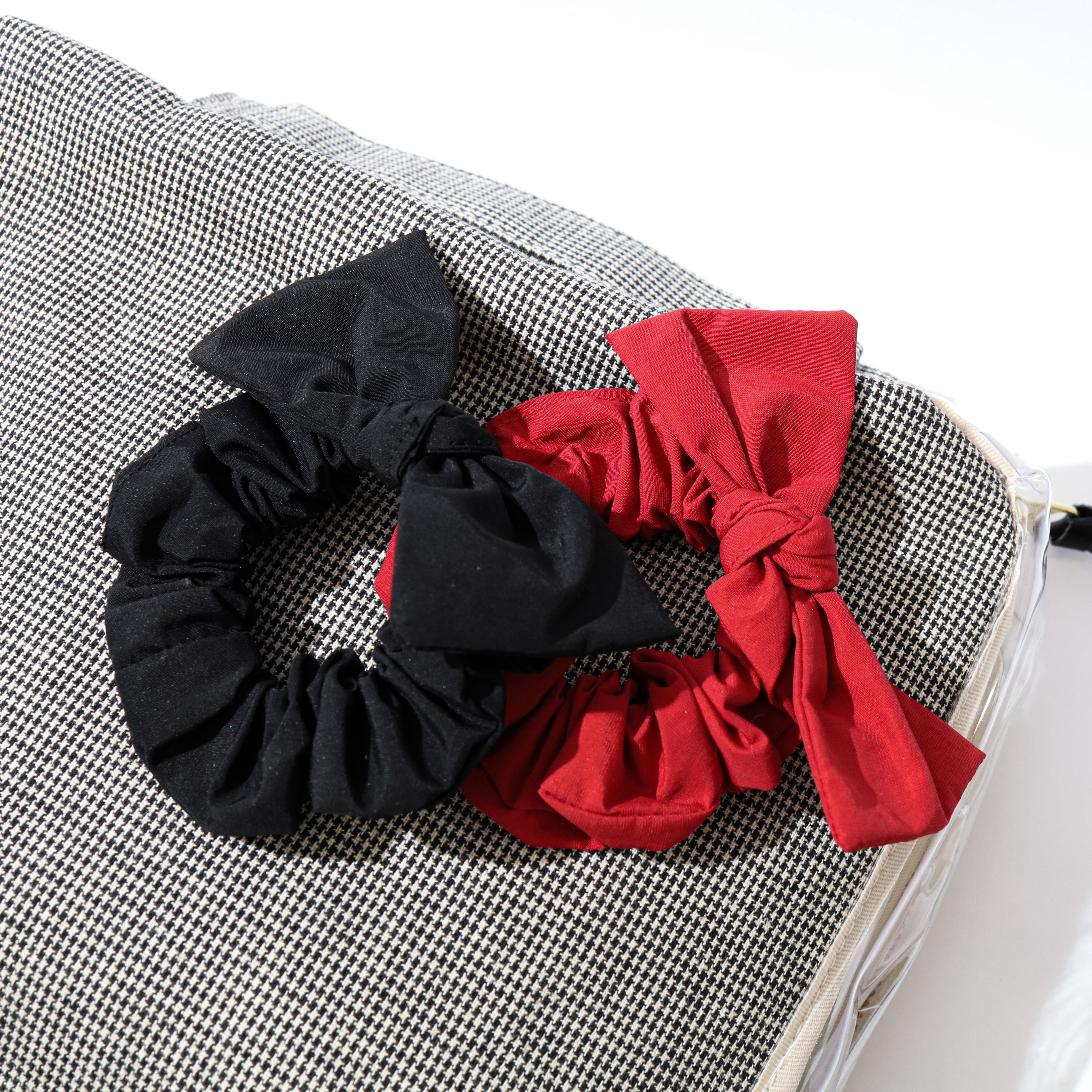 シャープなリボンが大人っぽいシュシュ。シャープなフォルムのリボンと、クシュっと結ばれた中央部分がラフな印象で、可愛くなり過ぎない様に仕上げました。いつものお家コーデに程よい甘さをプラスしてくれます。撥水素材ですので、バスタイムやジムなどでのまとめ髪におすすめです。