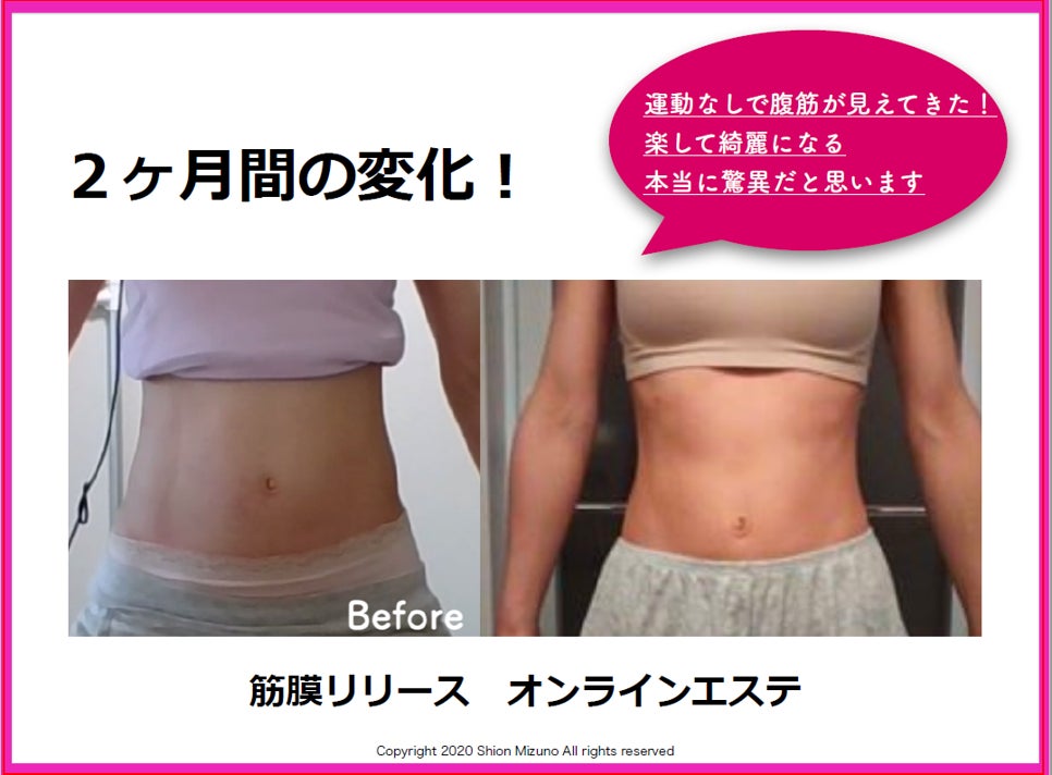 エステは、「自分では出来ず、やって貰うこと」が従来の姿の為、オンライン化出来ないと言われていました。そんな中でも、参加した方が次々に結果を出す事でご好評頂き、「オンラインで学ぶ理想のくびれが期待できる筋膜リリースエステ」としてNo.1を獲得出来ました。