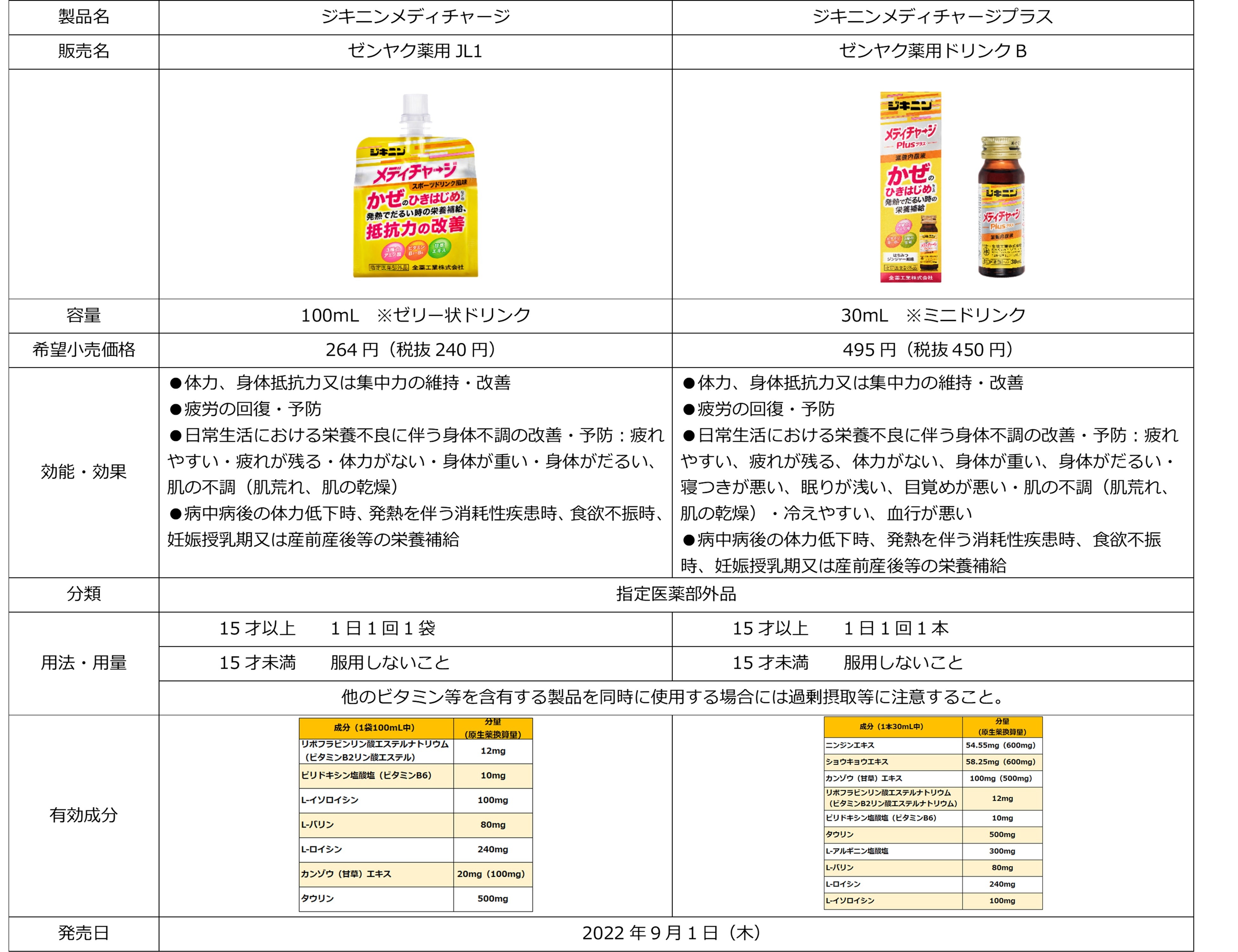 かぜ薬の「ジキニン」から栄養補給を目的とした「ジキニンメディチャージ」シリーズも 9 月 1 日(木)に新発売!