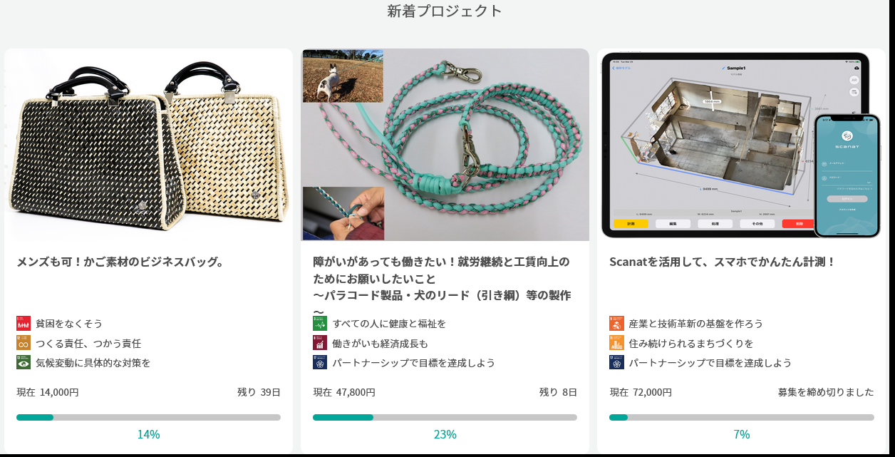 サスティナシードでのプロジェクト参加は、法人及び個人の方が所定の手続きと審査を通過した際に掲載することが可能です。