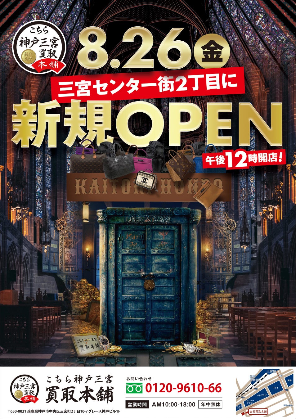 FC展開を見据えた金貨買取本舗が神戸初上陸、「こちら神戸三宮買取本舗」として8月26日オープン!