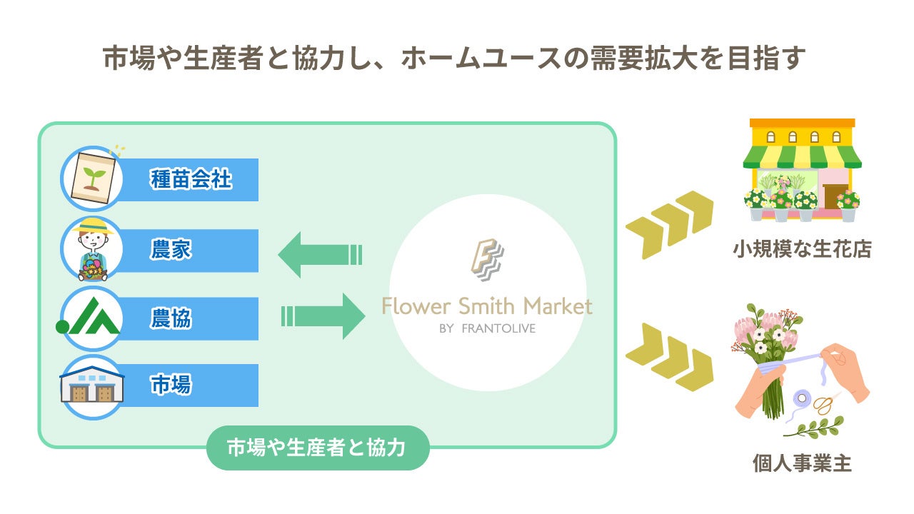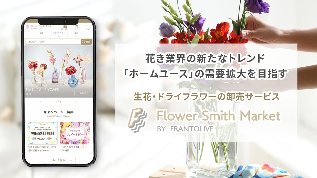 (株)frantoliveは、近年のような花き産業のダイナミックなトレンドの変化に対応すべく、家庭需要の花を誰でも簡単に仕入れることができる卸売りサービス「Flower Smith Market(フラワースミスマーケット)」をリリースします。