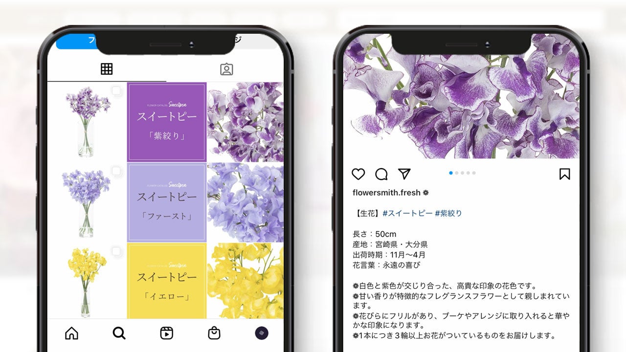 Instagramでは、フラワースミスマーケットの商品から、今特に押さえておきたい旬の花材をピックアップしてご紹介。生花・ドライフラワー・高級ドライフラワーそれぞれの仕入れのアイデアとしてご活用いただけます。