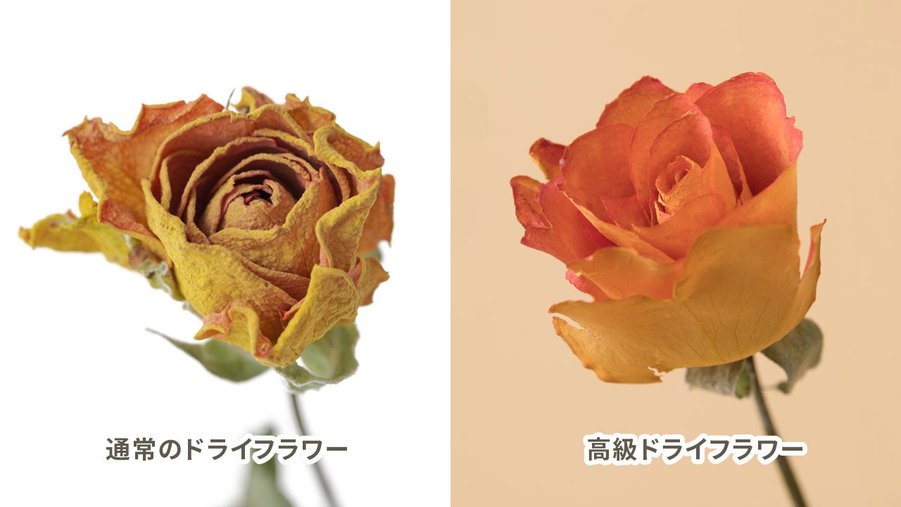 まるで生花のように柔らかい質感の「高級ドライフラワー」は、フラワースミスマーケットが専用の設備で作るオリジナル商品。一本でも飾れる美しい形と、時間の経過とともに変化する花姿が楽しめます。