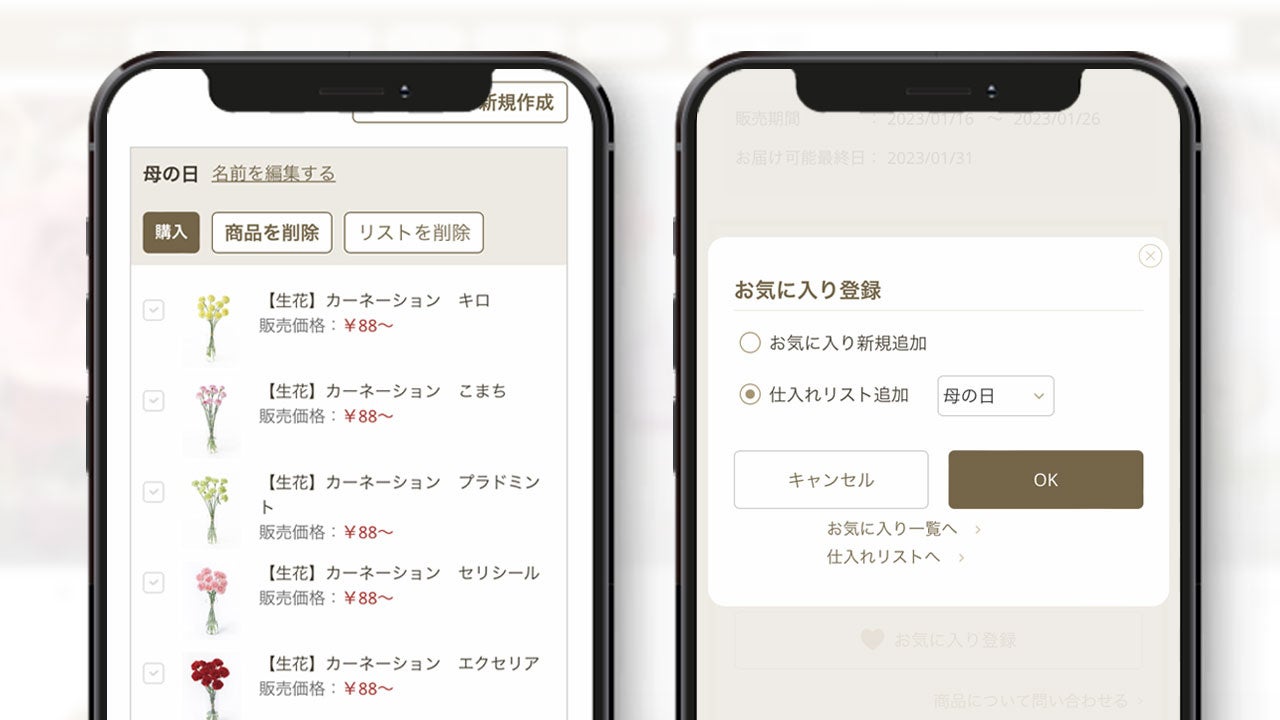 これらは生産者や種苗会社に必要な情報を提供するなど密に連携をとり、花の生産から携わることで「一般家庭向けとして最適な品質・サイズ・価格」の花を提供することを実現しています。