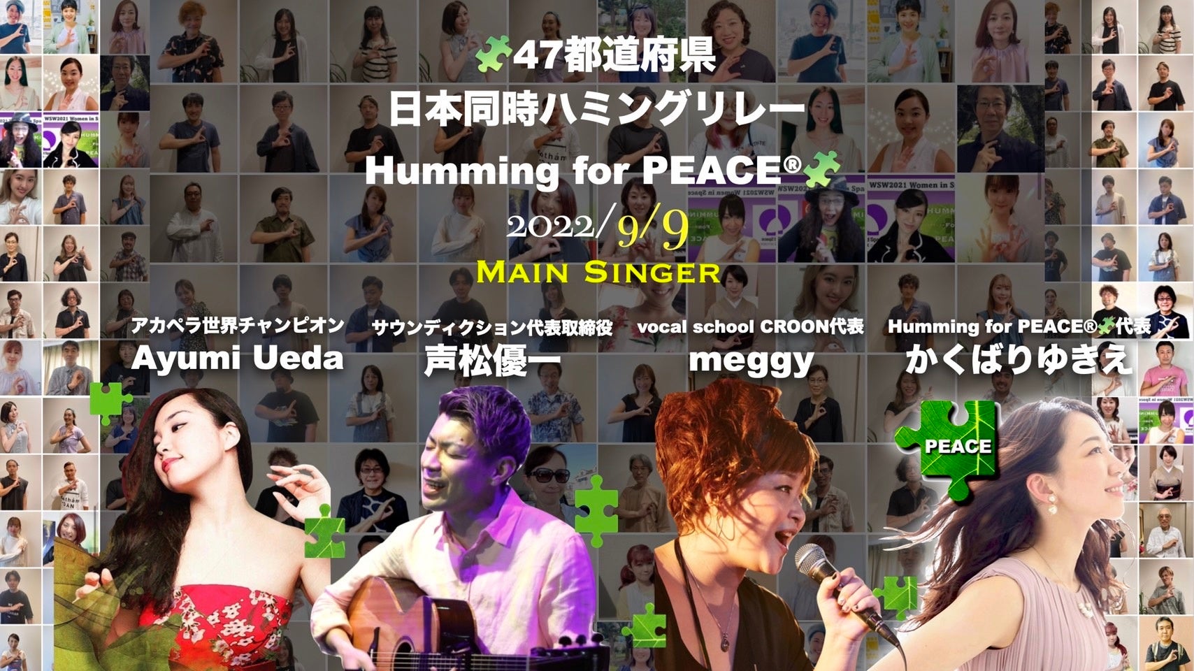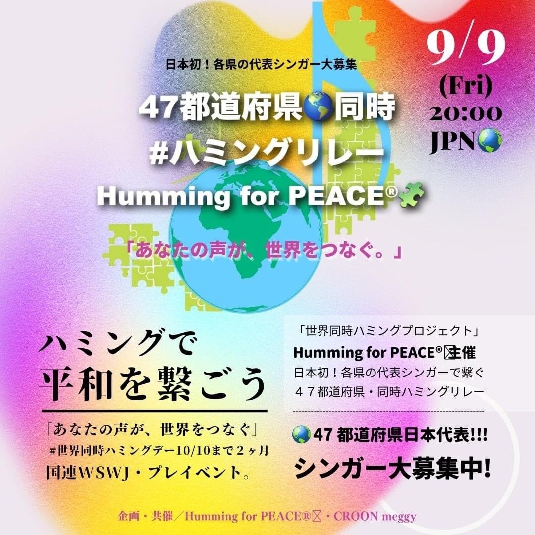 今回のイベントでは、47都道府県から代表シンガーを選出。北海道から沖縄まで、Humming for PEACE®公式テーマソングのフレーズをリレーし、平和への思いを繋いでいきます。